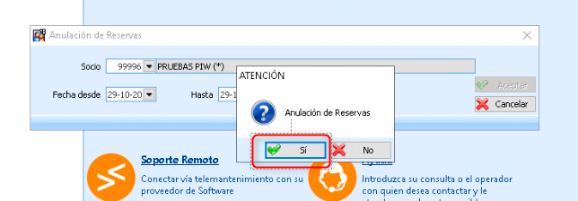 Al aceptar aparecerá un mensaje para que confirmes indicando SI que queréis anular la reserva