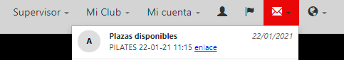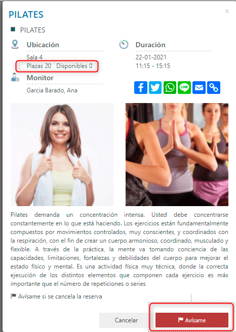 Gestión de actividades dirigidas (Aviso plazas disponibles)