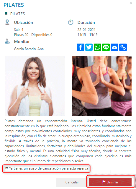 Para activar el funcionamiento de los Avisos de cancelación de reservas de actividad dirigida, previamente deberéis informar a Gpa para que activen esta función en vuestra Oficina Virtual – App