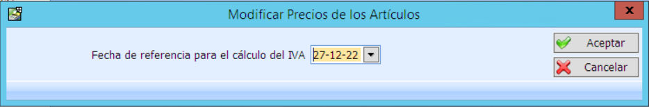 El programa preguntara la fecha de referencia para el cálculo de IVA con este mensaje: