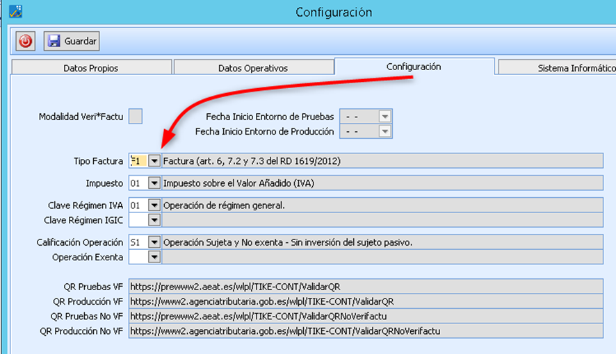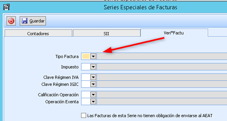 - Archivo > Tablas de Facturación > Series Especiales de Facturas > Pestaña Veri*Factu