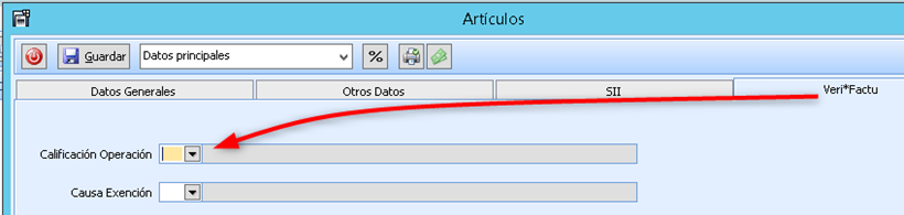 - Archivo > Artículos > Pestaña Veri*Factu