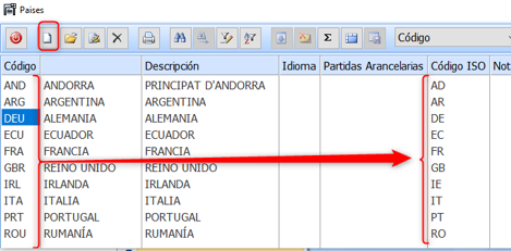 Si ya existe el Pais pero sin código ISO debe entrar dentro y darle a GUARDAR