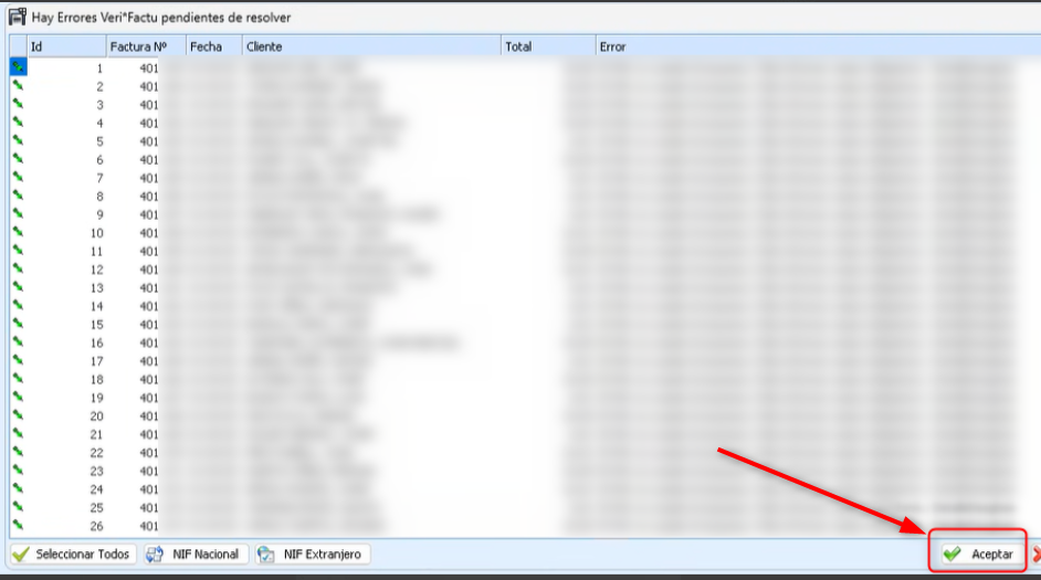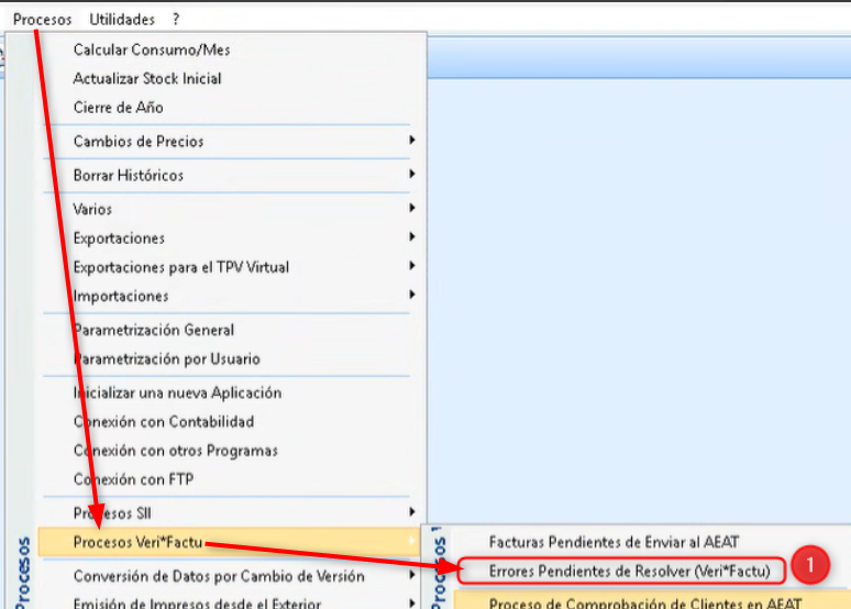 Proceso > Procesos Veri*Factu > Errores Pendientes de Resolver: