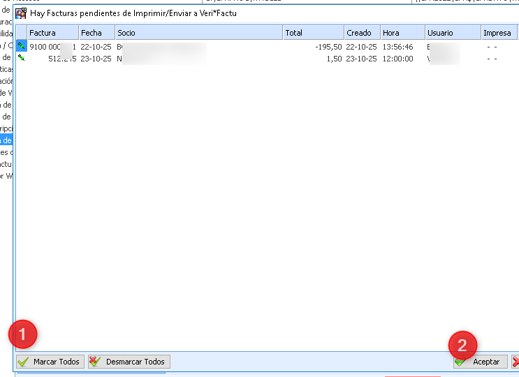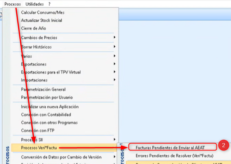 Procesos >Procesos Veri*Factu > Facturas Pendientes de Enviar al AEAT: