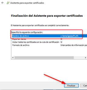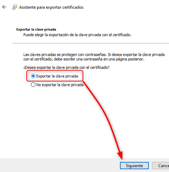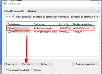 - Cogemos el Certificado de la empresa correspondiente e indicamos EXPORTAR;