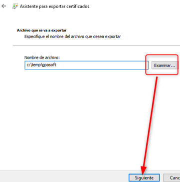 - Deberemos indicar una ruta para guardar el archivo que generará la exportación y recomendamos la que ven en la imagen (Es un Ejemplo) LO PUEDE GUARDAR EN LA CARPETA QUE QUIERA, esta imagen solo es un ejemplo;