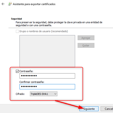 - Marcar el dato “Contraseña” e indicar una contraseña que deberá RECORDAR e informarnos, para cuando lo capturemos en el programa de Veri*Factu. Sin esa contraseña, después no funcionará: