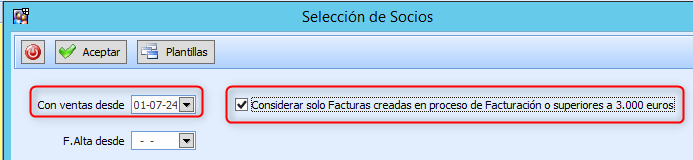 *Considerar solo facturas del proceso de facturación y con importe superior a 3.000€ para que no tenga en cuenta ventas puntales a externos (no socios)
